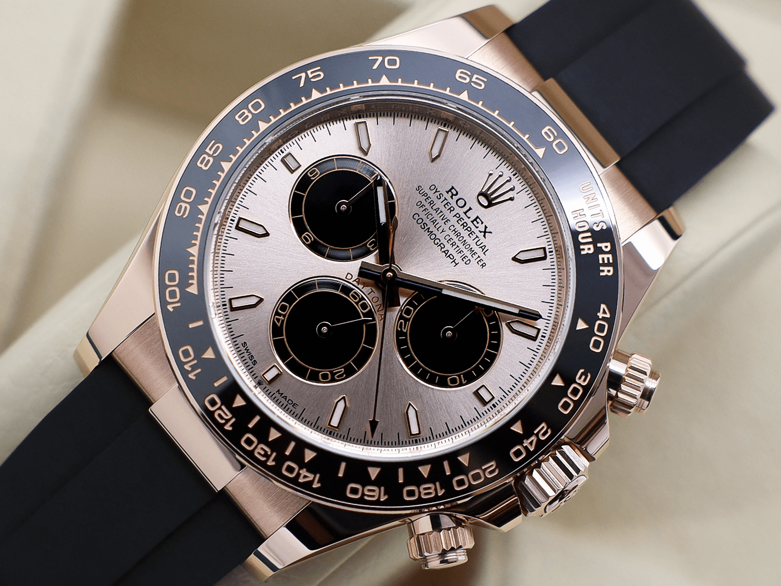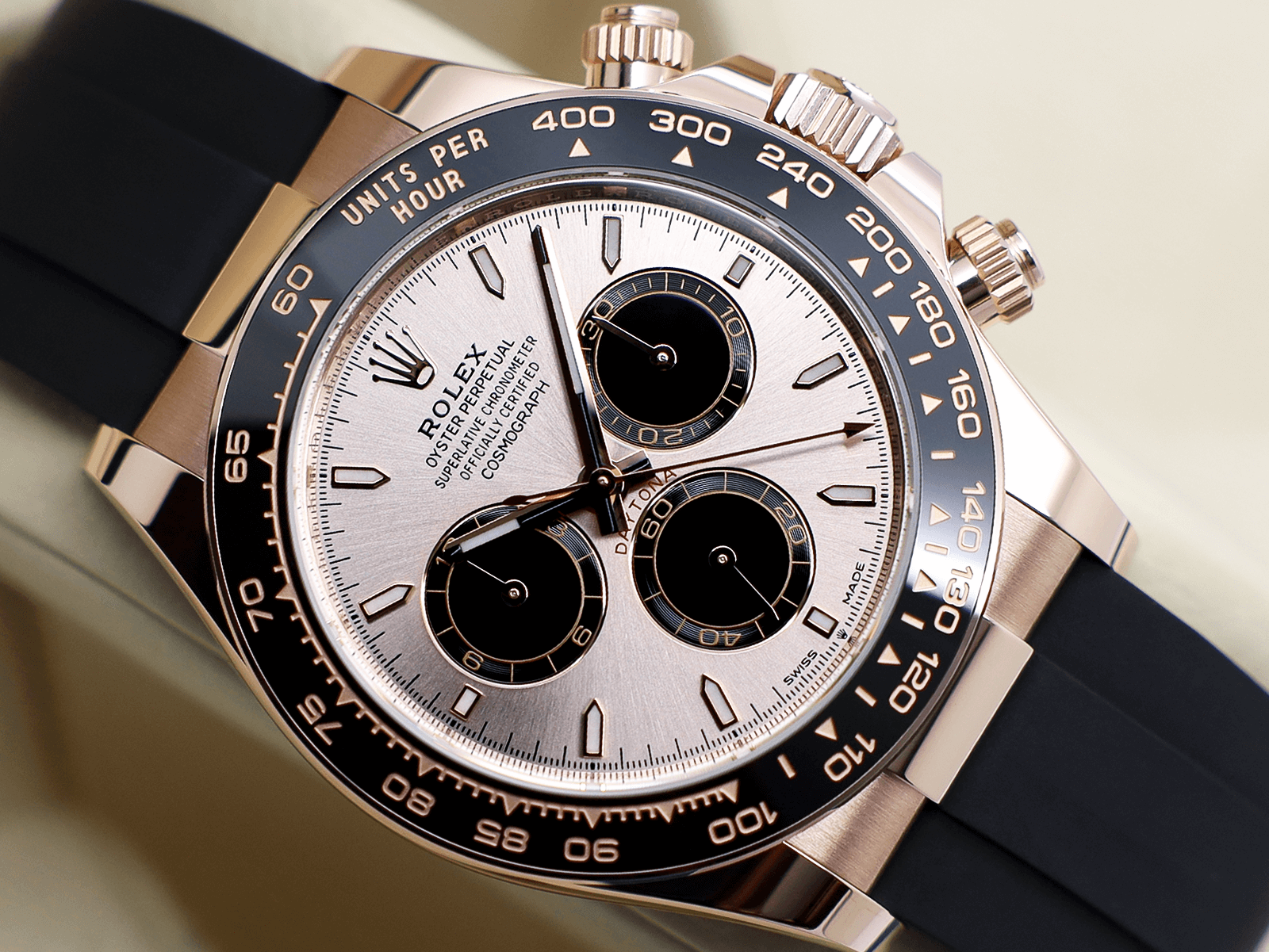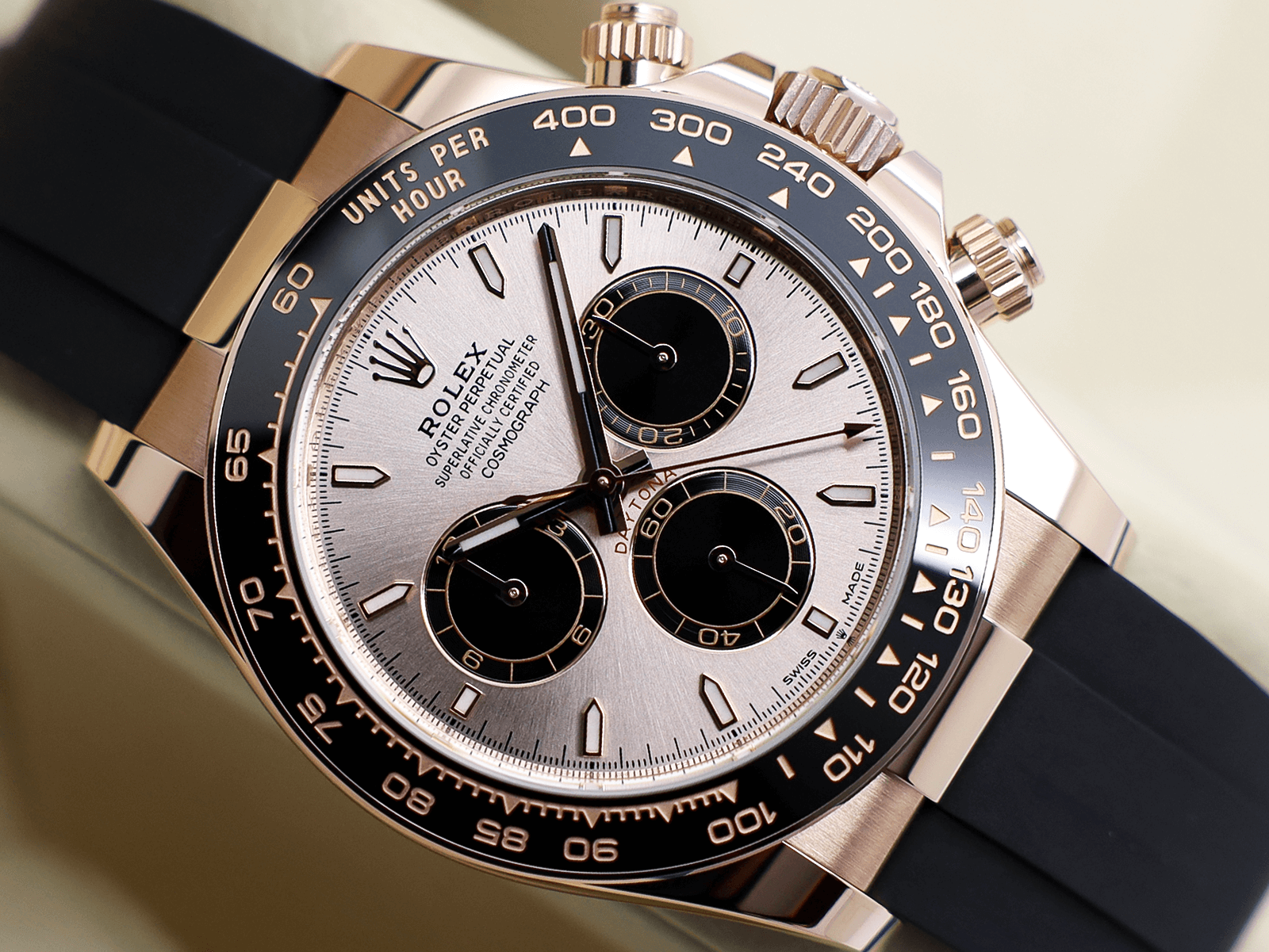 GENTS ROLEX DAYTONA 18ct ROSE GOLD OYSTERFLEX 126515LN SUNDUST DIAL NEW MODEL UNWORN WARRANTY 2024 UK B&P