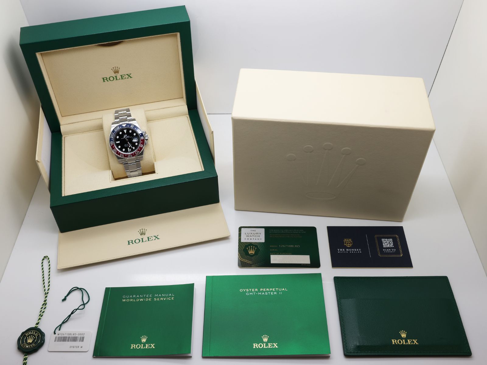 GENTS ROLEX GMT-MASTER II PEPSI 126710BLRO STAINLESS STEEL FULL STICKERS UNWORN 2021 UK B&P