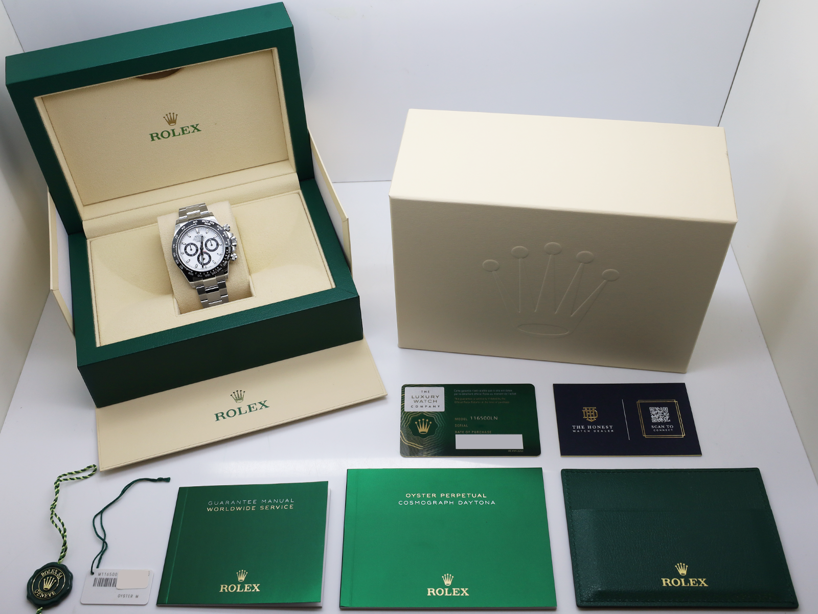 GENTS ROLEX DAYTONA PANDA 116500LN STAINLESS STEEL WHITE DIAL WARRANTY 2022 B&P