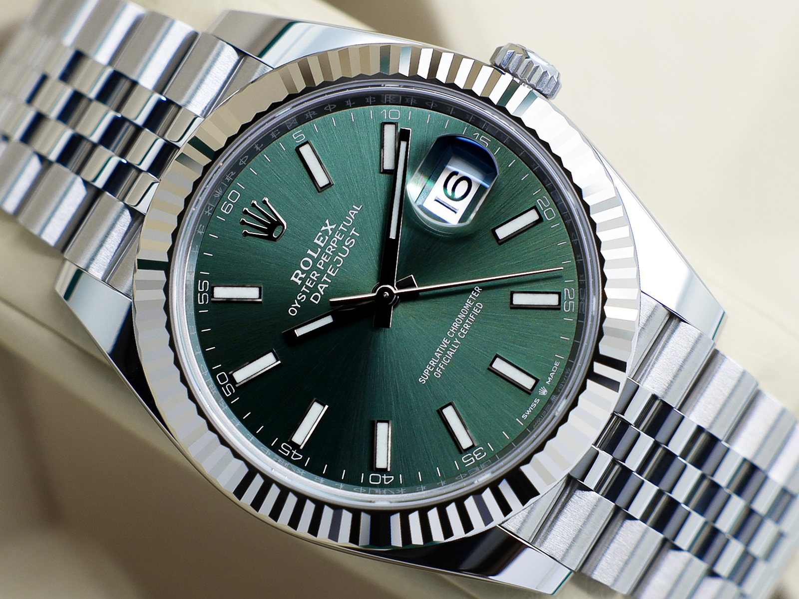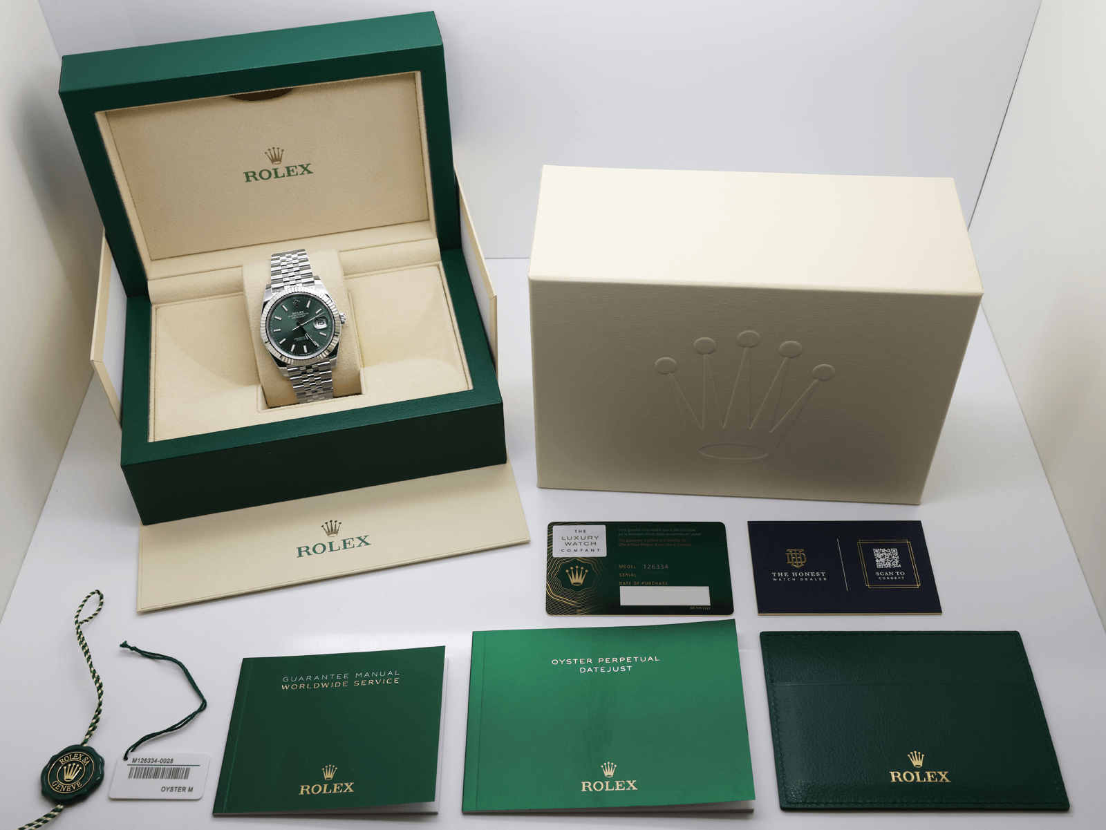 GENTS ROLEX DATEJUST 41mm 126334 STAINLESS STEEL MINT GREEN DIAL UNWORN WARRANTY 2024 UK B&P