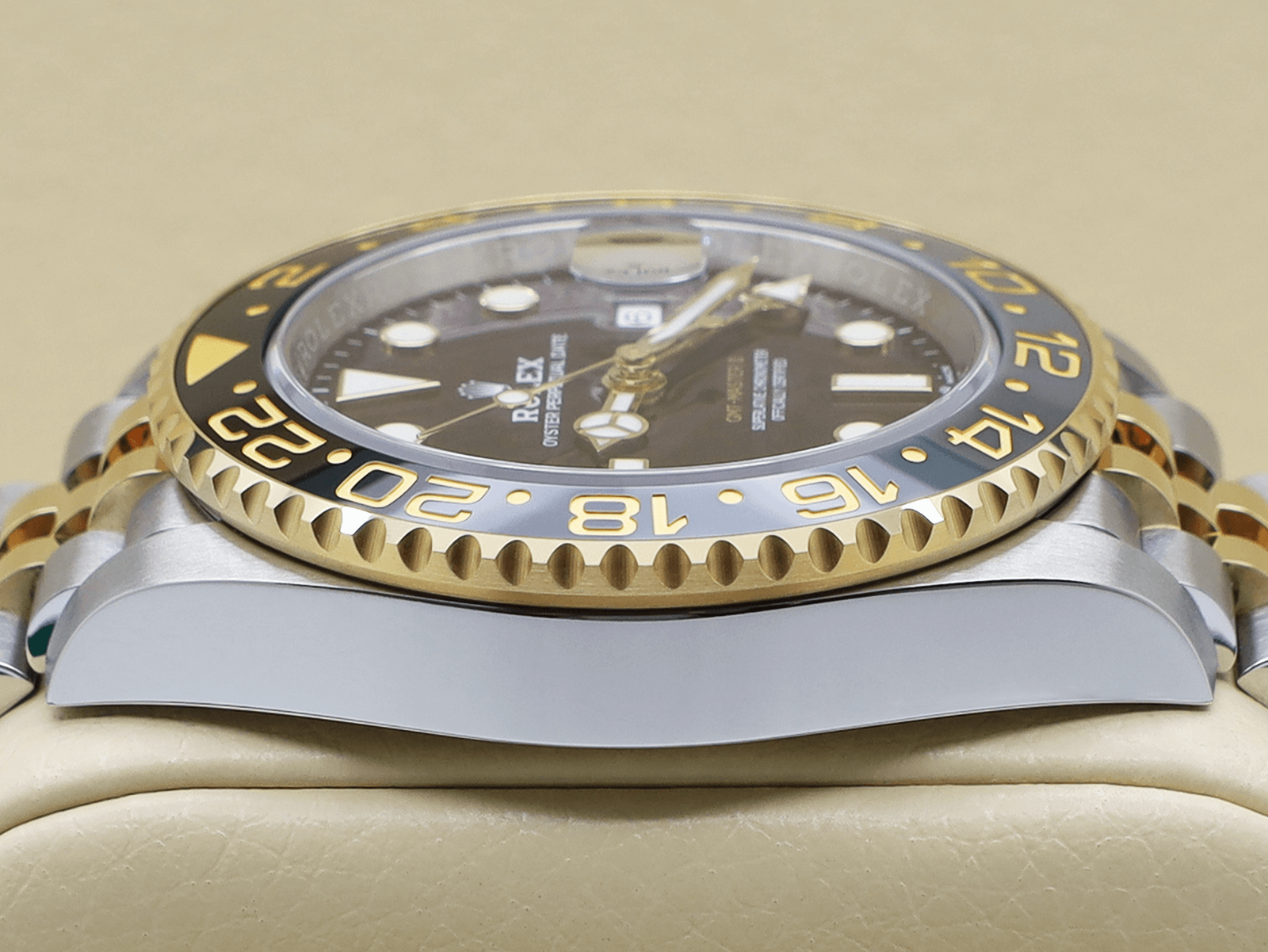 It has a Beautiful Rolex Solid 18ct Yellow Gold Rotating Bezel Set with a Grey and Black Ceramic Insert with Numerals.
