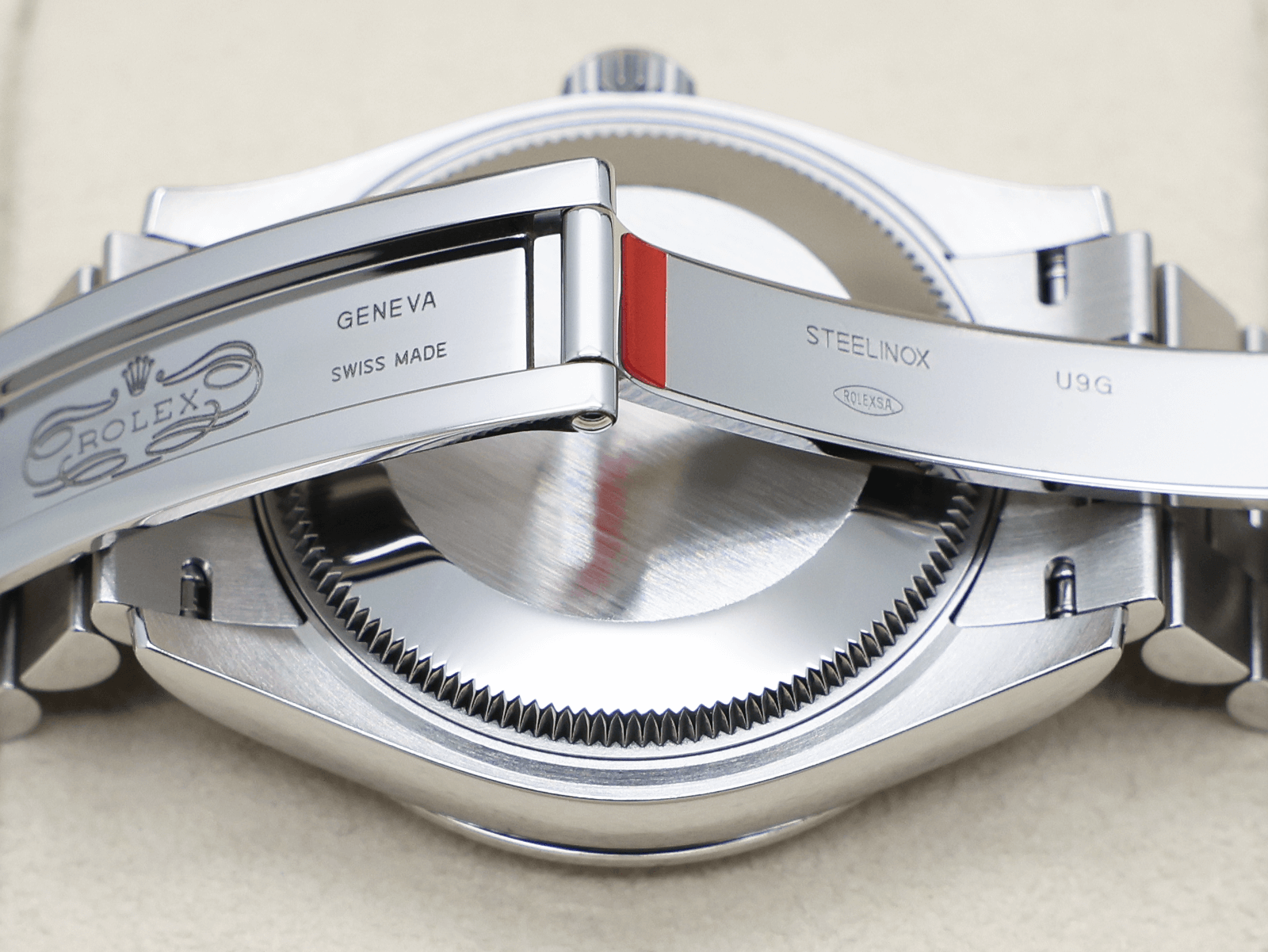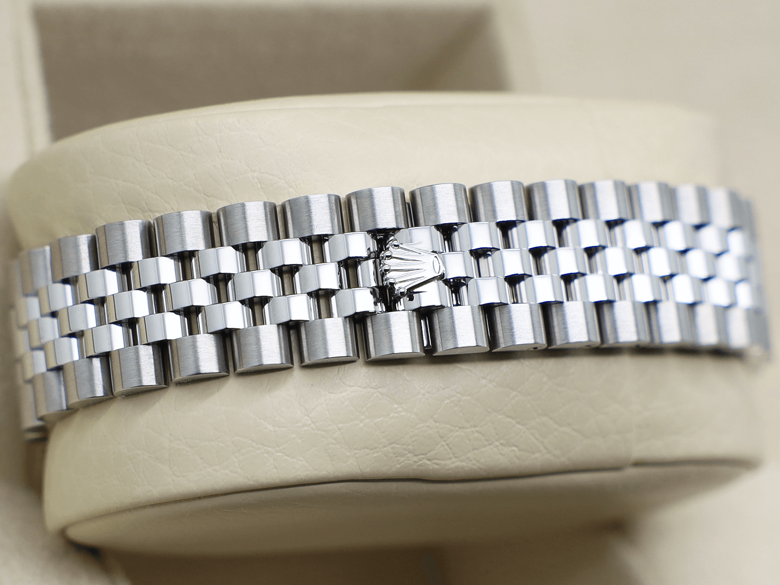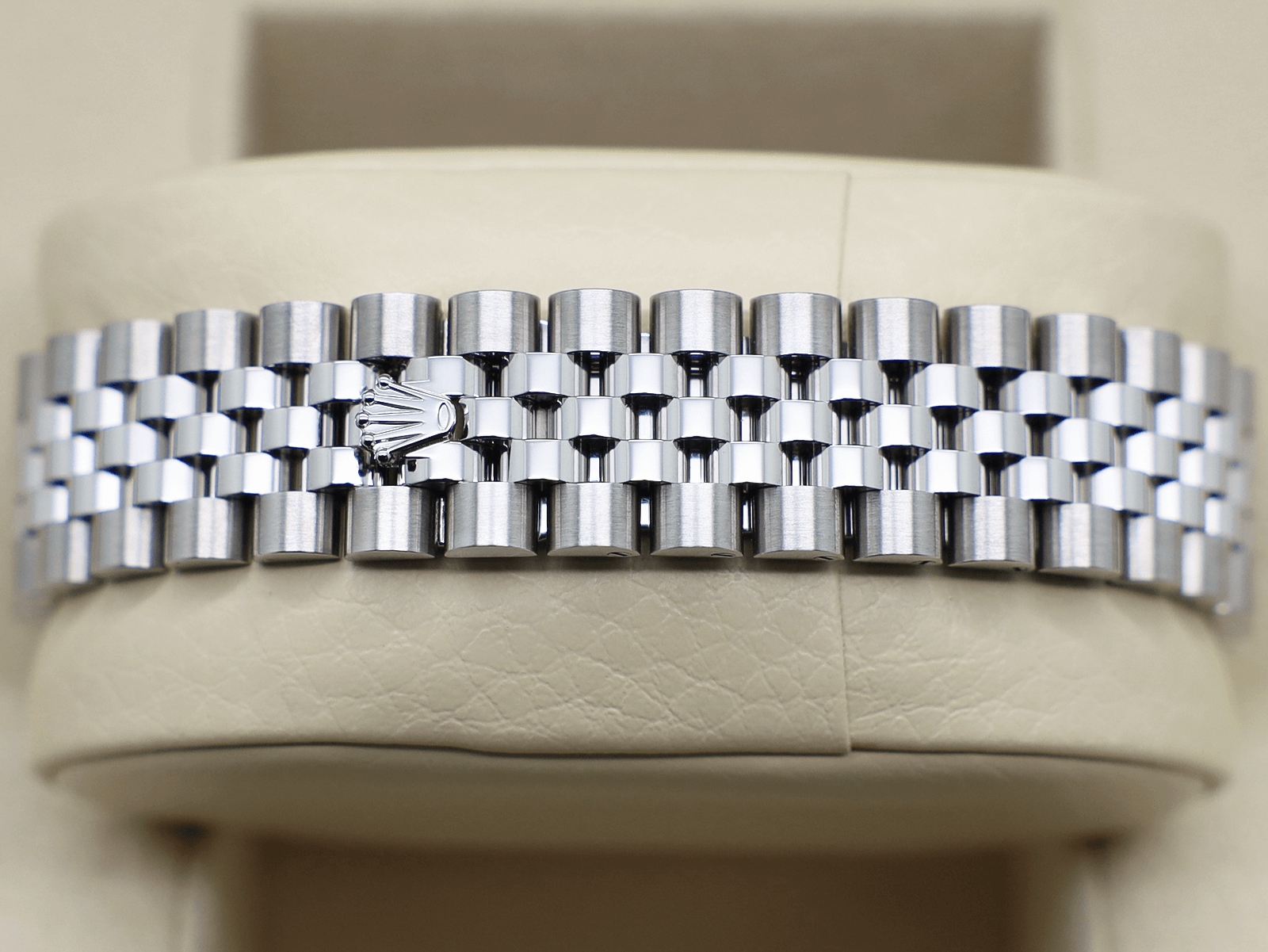 The Rolex Stainless Steel Jubilee Bracelet has a Full Retail Length and is Fitted with The Hidden Folding Safety Clasp.