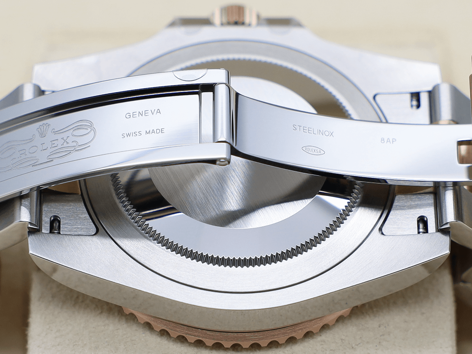 The Rolex 18ct Rose Gold and Stainless Steel Oyster Bracelet Has a Full Retail Length and is Fitted with the Double Folding Safety Clasp and Extension Link.