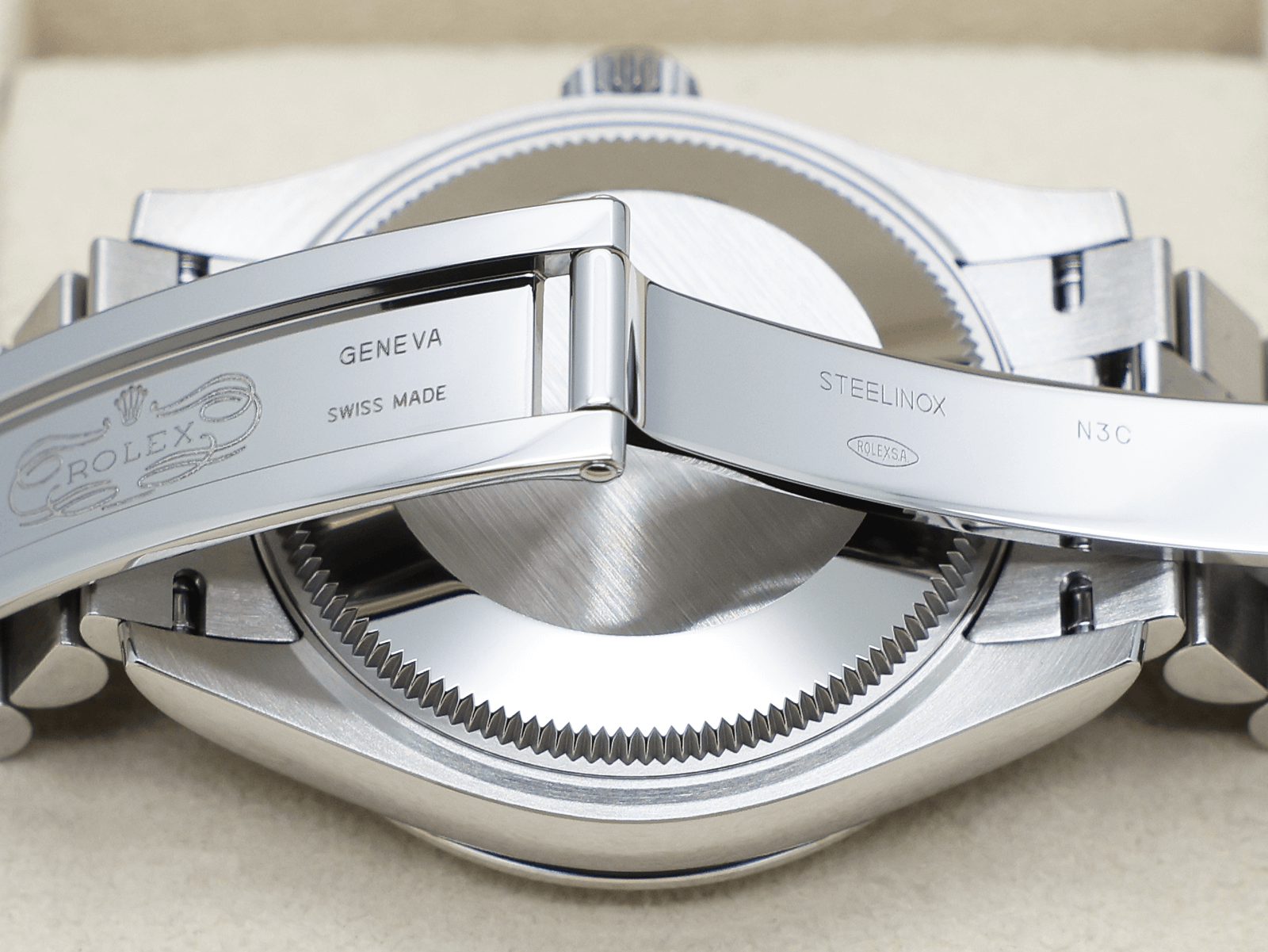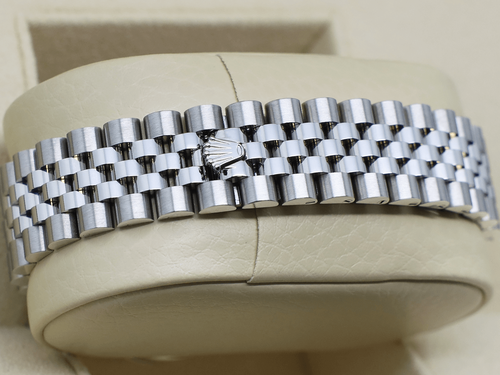 The Rolex Stainless Steel Jubilee Bracelet has a Full Retail Length and is Fitted with The Hidden Folding Safety Clasp.
