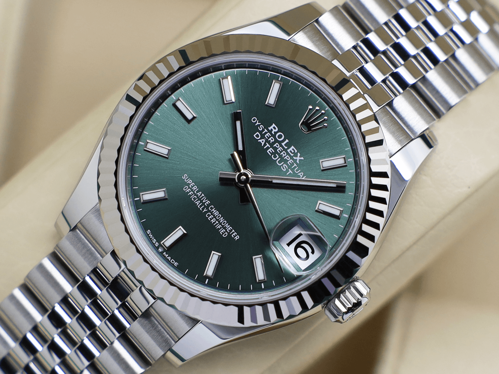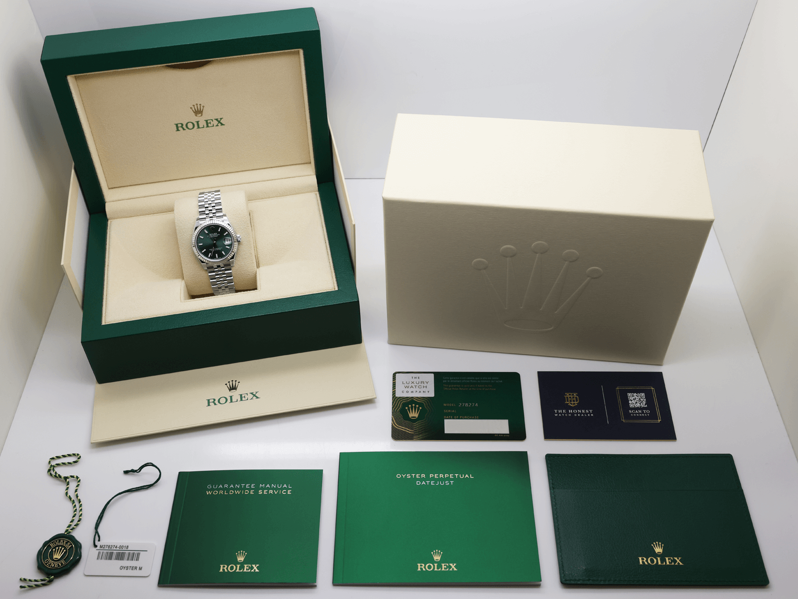 LADIES ROLEX DATEJUST MIDSIZE 31mm 278274 STAINLESS STEEL MINT GREEN DIAL UNWORN WARRANTY 2024 UK B&P