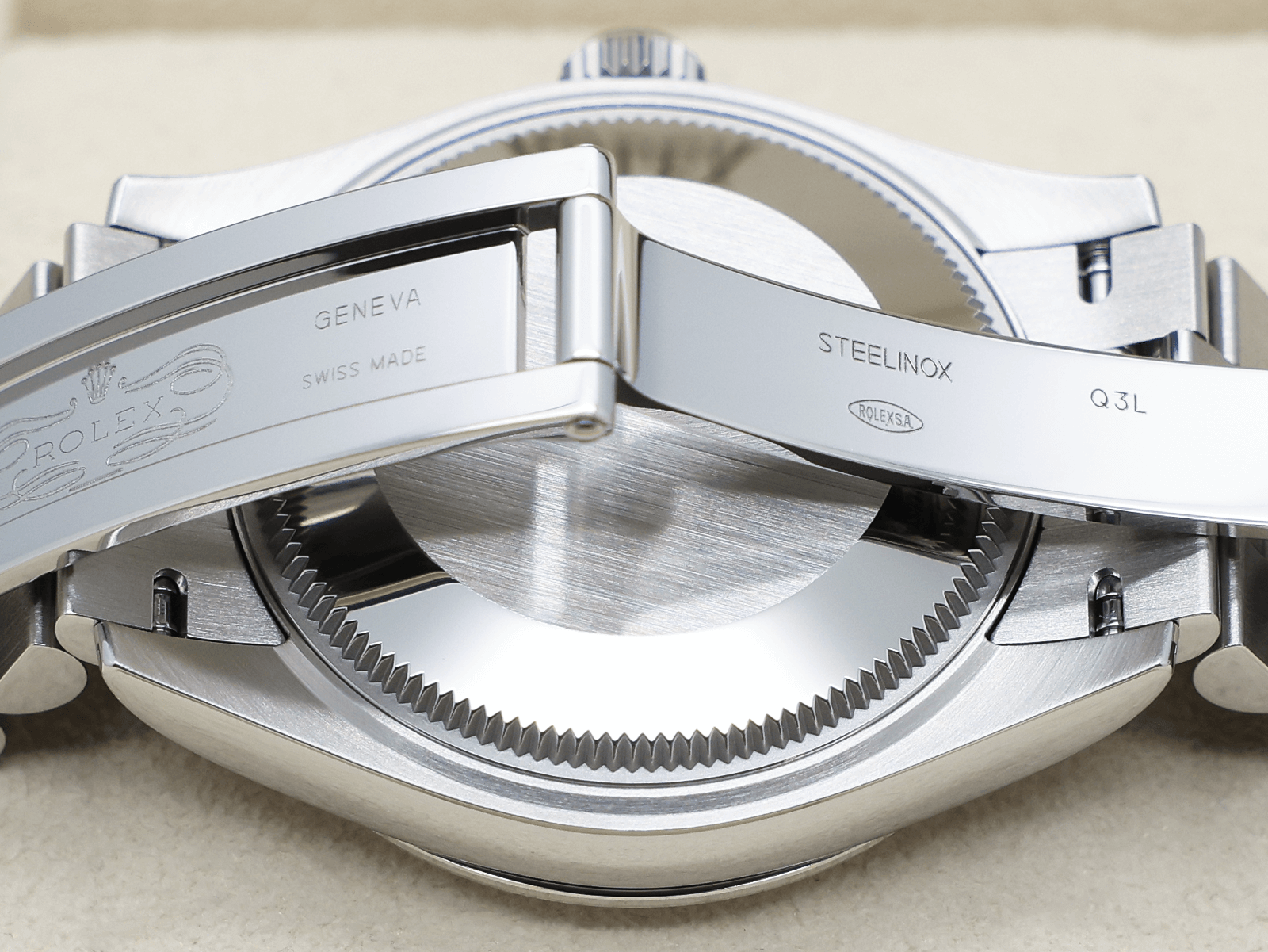The Rolex Stainless Steel Jubilee Bracelet has a Full Retail Length and is Fitted with The Hidden Folding Safety Clasp.