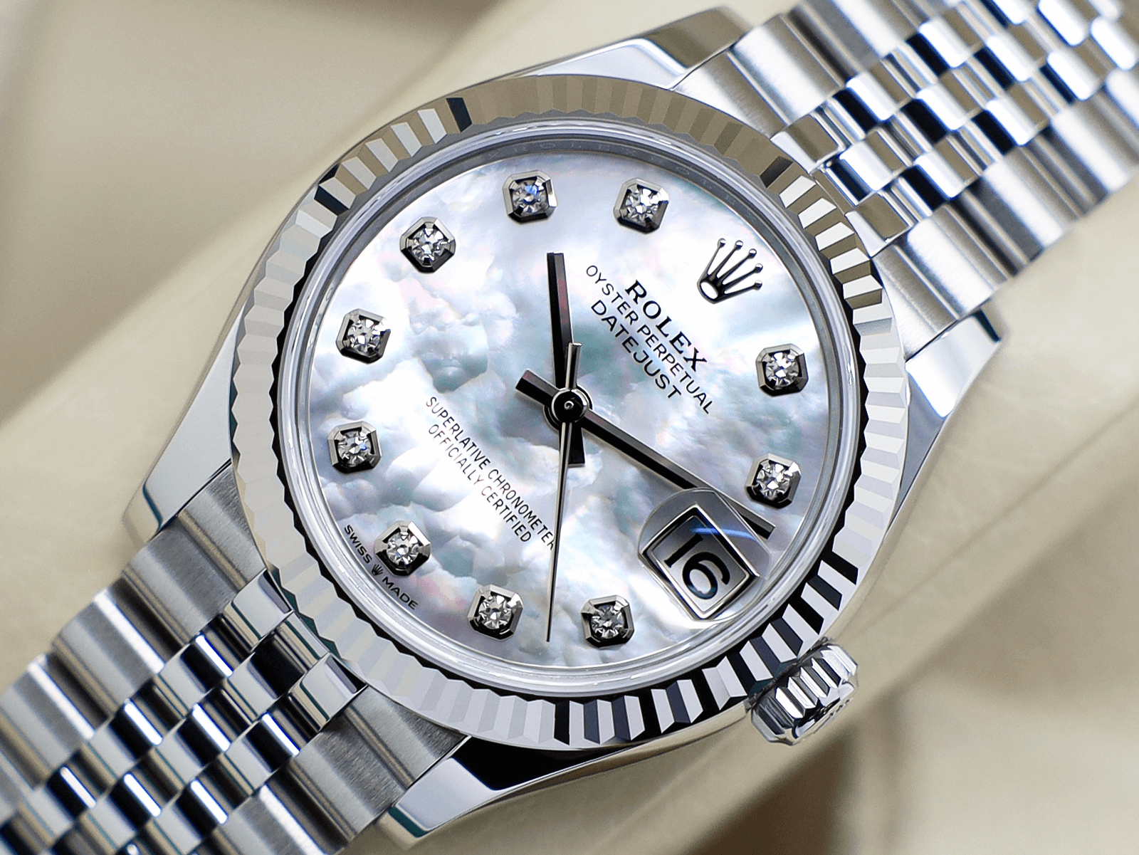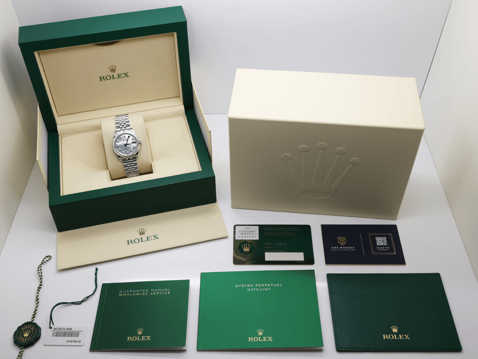 LADIES ROLEX DATEJUST MIDSIZE 31mm 278274 STEEL WHITE MOTHER OF PEARL DIAMOND DIAL UNWORN WARRANTY 2024 UK B&P