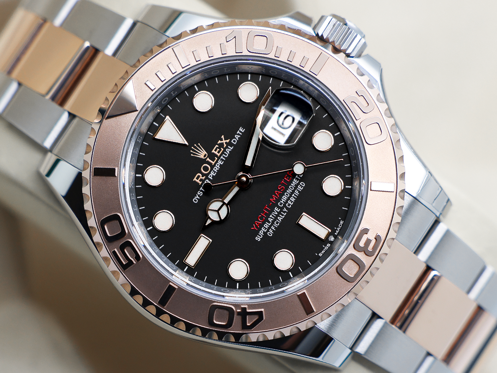 Stunning Rolex Yacht-Master 40 Watch in 18ct Rose Gold and Stainless Steel with a Black Dial and a Solid 18ct Rose Gold Rotating Bezel Set with Numerals.