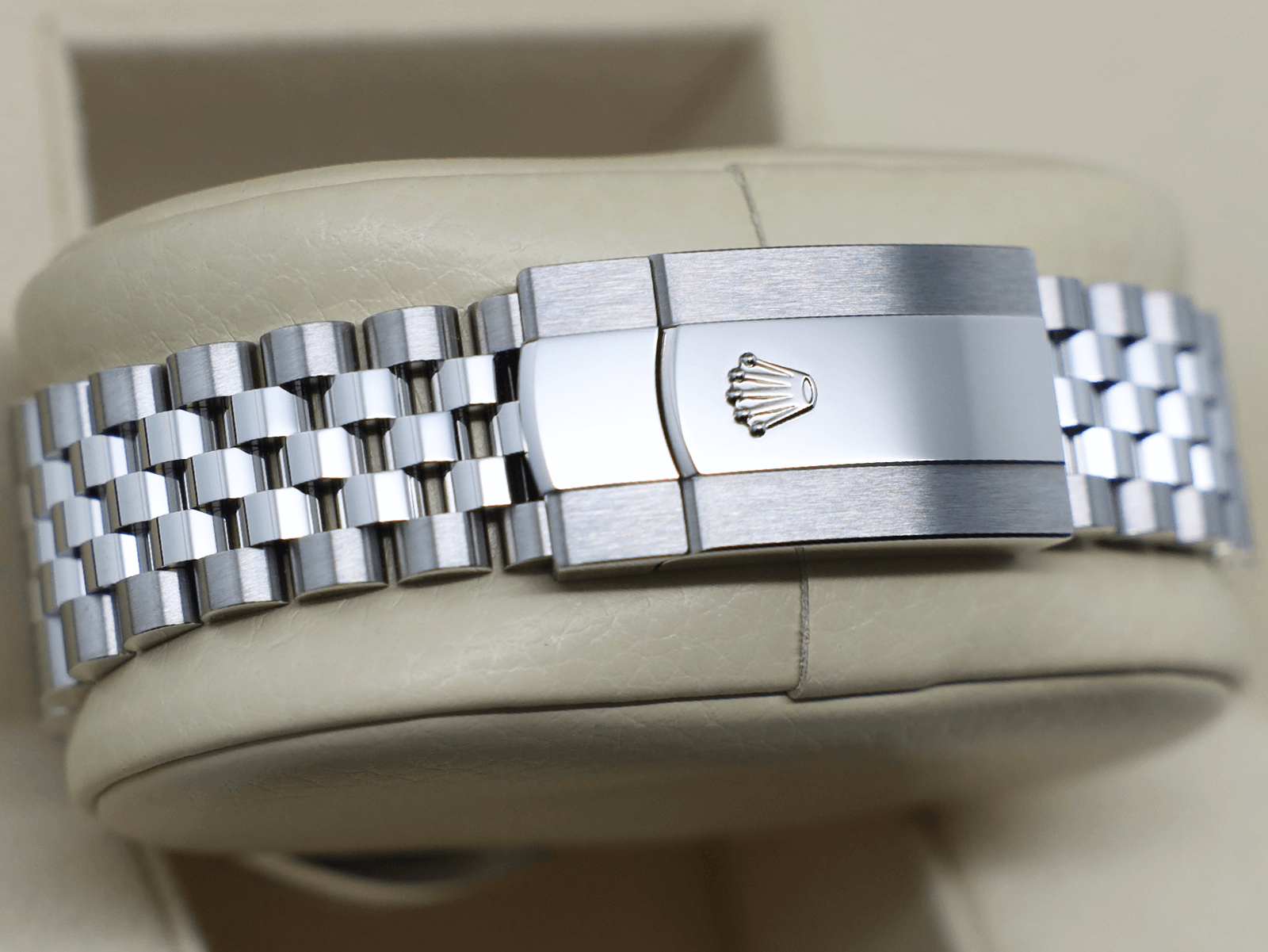 The Rolex Stainless Steel Jubilee Bracelet has a Full Retail Length and is Fitted with The Folding Safety Clasp and Extension Link.