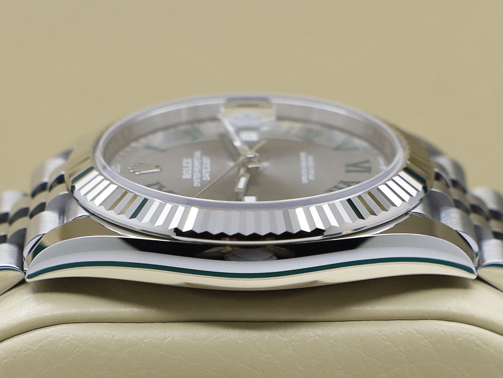 Stunning Gents Rolex Datejust 41mm Watch in Stainless Steel with a ‘Wimbledon’ Dial and a Solid 18ct White Gold Fluted Bezel.