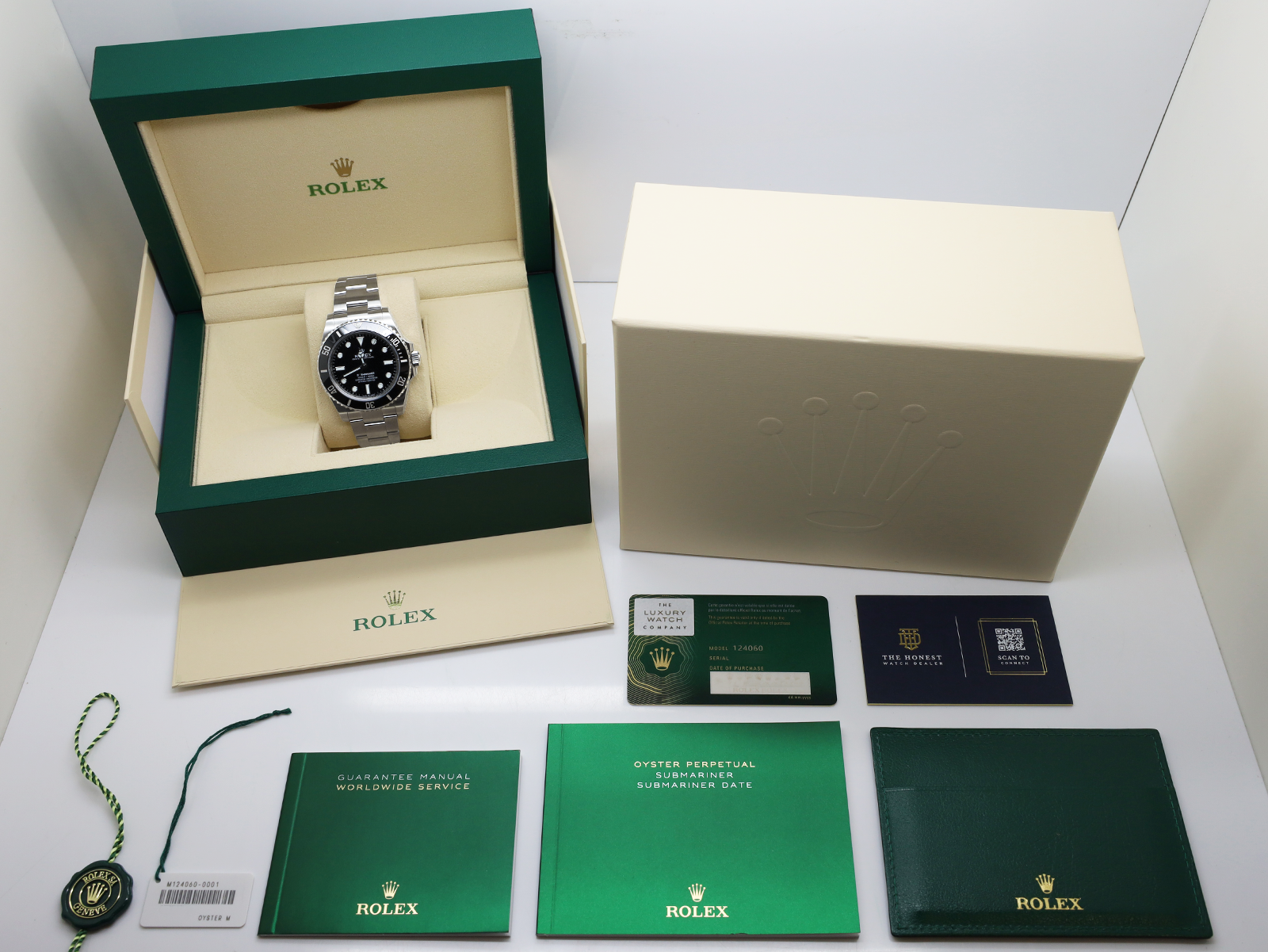 GENTS ROLEX SUBMARINER NON DATE 41mm 124060 STAINLESS STEEL WARRANTY 2022 B&P