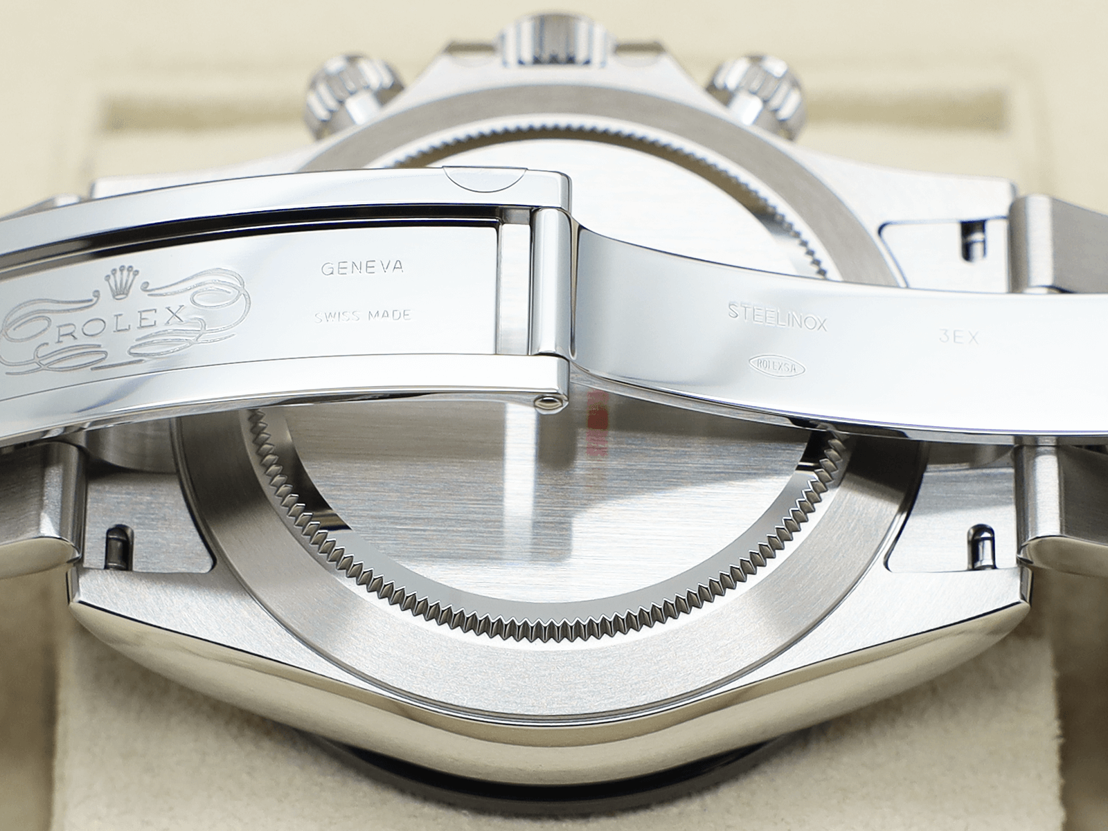 It has The Stunning White ‘Panda’ Dial Set with 18ct White Gold Luminous Baton Markers and Sub-Dials, 18ct White Gold Rolex Crown and 18ct White Gold Luminous Hands. This is a Very Rich looking and Easy to Read Factory Dial.